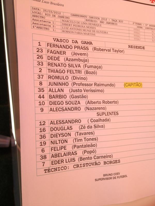 Fonte: Twitter da assessora de imprensa do Vasco Patrícia Gregório