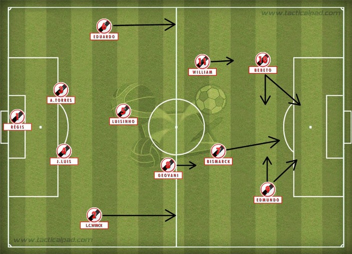 Vasco do Brasileiro de 1992 - O líder da primeira fase, com show na goleada por 4 a 2 sobre o Flamengo. Comandado por Nelsinho Rosa, o time cruzmaltino era ofensivo no 4-1-3-2. Promovido à equipe principal, Edmundo fazia dupla de ataque com um inspirado Bebeto e era municiado pelo trio de meias formado pelo veterano Geovani e Bismarck e William. Na fase semifinal, Régis falhou e faltou experiência ao jovem atacante nas “decisões” com o arquirrival rubro-negro;