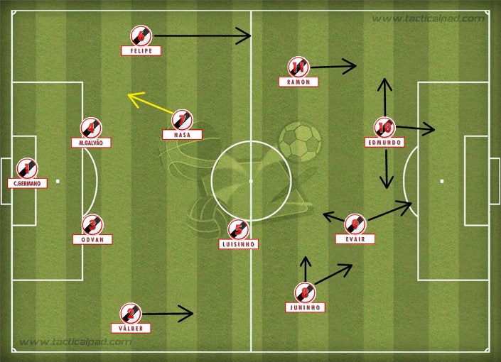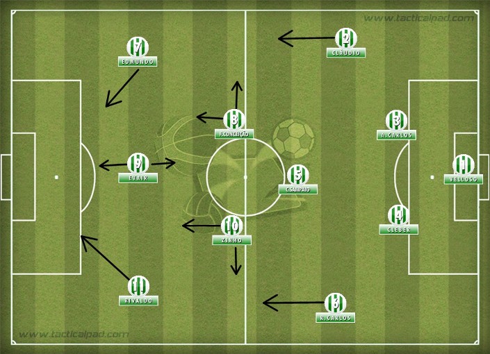 Palmeiras 1994 – Campeão brasileiro, em nova final contra o arquirrival, o time de Luxa mantinha o desenho tático e a movimentação de Evair. Sem Mazinho, Cláudio atuou na lateral-direita e Flávio Conceição herdou vaga no meio-campo. Zinho tinha liberdade para organizar o meio e municiar Edmundo e Rivaldo, que também fazia a diagonal a partir da esquerda. O “Animal”, apelido dado pelo narrador Osmar Santos, mais uma vez fez a diferença com gols e assistências;