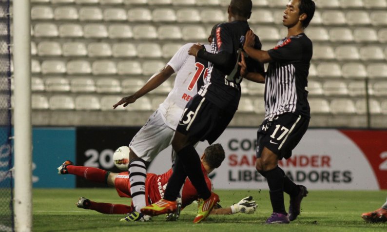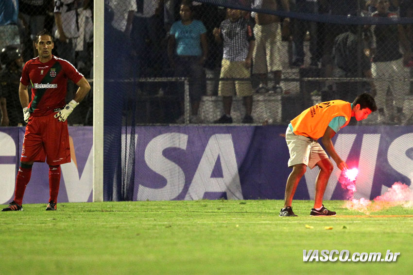 O jogo parecia decidido, quando a defesa vascaína resolveu colaborar com o time da casa. Um minuto após Fernando Prass fazer grande defesa em chute de Fernández, a zaga bateu cabeça, Renato Silva chutou a bola em cima de Felipe na área e ela sobrou para Curiel chutar por entre as pernas do arqueiro do Vasco e diminuir, aos 31. Estupidamente, aos 34 um torcedor peruano jogou um sinalizador dentro do campo e fez a partida parar, o que interessava ao Vasco naquele momento.