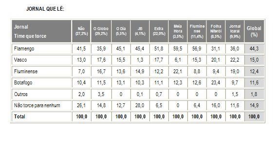 Uma interessante informação trazida pelo Instituto GPP tem relação com as publicações mais lidas por cada torcida. Percebem-se flamenguistas mais afeitos a jornais populares como o Extra e o Meia Hora – além da publicação local O Fluminense. Com algumas exceções, vascaínos, tricolores e botafoguenses demonstram perfil de leitura mais diluído.