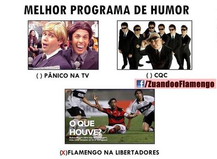 Melhor programa de humor: ( ) CQC / ( ) Pânico na TV / ( ) Legendários / (X) Jogo do Flamengo.