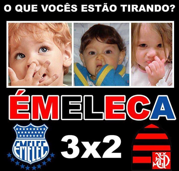 O que há em comum entre Eike Batista, Pré-Sal, CQC e Flamengo? Basta dar uma olhadinha no Twitter e no Facebook em busca dos comentários sobre o vexame do Rubro-Negro nesta quarta-feira, contra o Emelec, pela Liberdadores. A derrota de virada, por 3 a 2, foi um prato cheio para torcedores rivais.