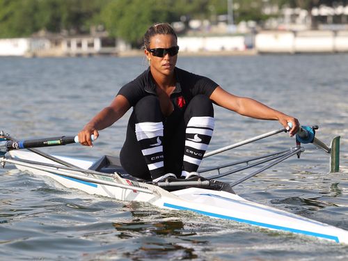 Kissya é tão rara quanto múltipla. Do alto de seu 1,80m, pelos quais estão distribuídos os 68 quilos, a remadora de 29 anos, nascida em Uberlândia e que está no Rio há 16 anos, é também modelo.