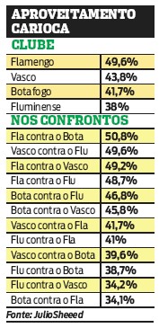 Desde 2002, os quatro grandes clubes do Rio de Janeiro se enfrentaram centenas de vezes. Neste período de aproximadamente uma década,em clássicos válidos por diferentes competições, o Flamengo, vencedor da maioria dos títulos estaduais no período, obteve o melhor desempenho. Confira: