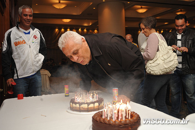 Após a vitória do Gigante da Colina por 1 a 0 sobre o Nacional, em Uruguai, a delegação vascaína comemorou o aniversário do mandatário do clube. A família de Dinamite também esteve presente.