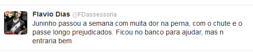 FDassessoria: Juninho passou a semana com muita dor na perna, com o chute e o passe longo prejudicados. Ficou no banco para ajudar, mas n entraria bem