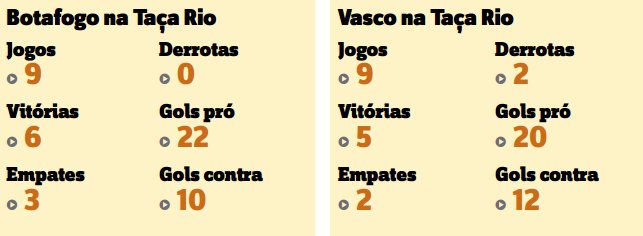 O Vasco, por outro lado, não teve bom desempenho na Taça Rio. Diante dos pequenos, tropeçou duas vezes, nos empates com Bonsucesso (2 a 2) e Resende (1 a 1). Nos clássicos, duas derrotas para Flamengo (2 a 1) e para o próprio Botafogo (3 a 1).