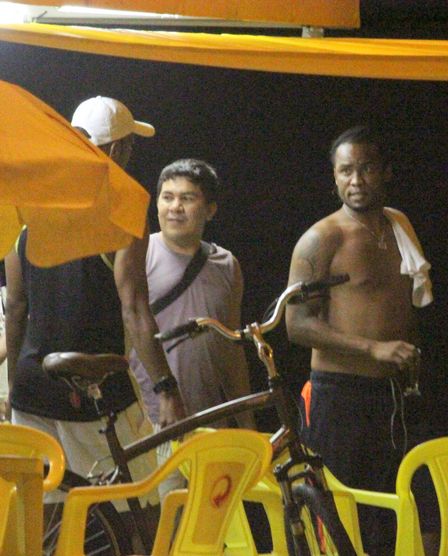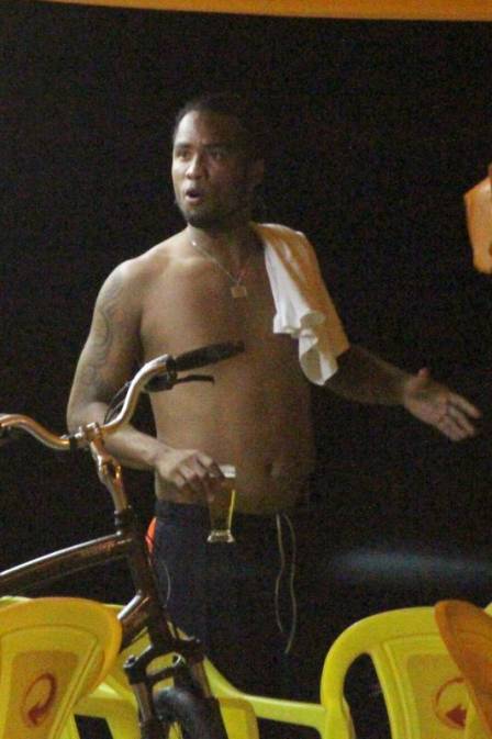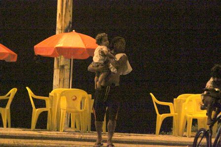 O jogador Carlos Alberto do Vasco ainda está colhendo frutos da vitória contra o Flamengo no último domingo. O meia aproveitou o início de noite desta terça-feira para tomar um chopinho na praia da Barra na companhia de amigos e do filho.