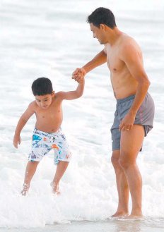 Juninho e Eder Luis também aproveitaram para passear com seus filhos, mas não entraram no mar por causa das fortes ondas.