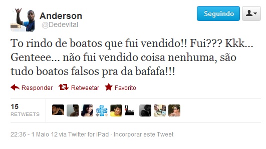 Dedevital: To rindo de boatos que fui vendido!! Fui??? Kkk... Genteee... não fui vendido coisa nenhuma, são tudo boatos falsos pra da bafafa!!!