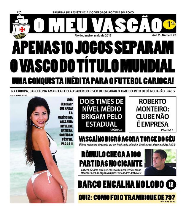 A edição de maio (número 26) do jornal O MEU VASCÃO vai para as bancas do Rio, Niteroi, São Gonçalo e municípios da Baixada na madrugada desta quinta-feira. Continua sendo o maior jornal do Brasil dedicado a um único clube em tiragem e circulação em bancas.