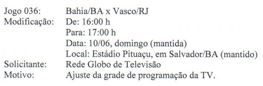 CBF altera horário de Bahia x Vasco, dia 10/06, pelo Brasileirão