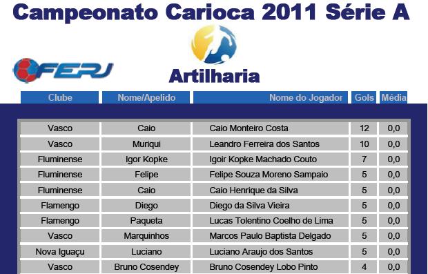 São do Vasco da Gama os dois principais goleadores do Campeonato Estadual Infantil. Caio lidera a tábua de artilheiros com 12 gols, e Muriqui vem logo a seguir com 10. O terceiro colocado, Igor Kopke, do Fluminense, vem bem atrás, com 7 tentos. Os dados estão atualizados até a 7ª rodada.