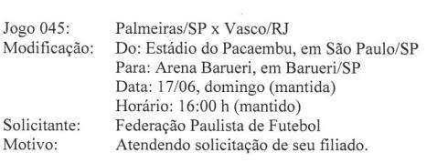 CBF muda local de Palmeiras x Vasco, dia 17/06, pelo Brasileirão