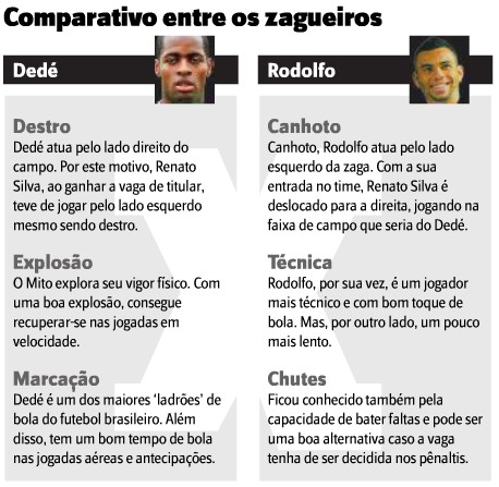 Após testes no vestiário, o departamento médico cruz-maltino constatou que Dedé ainda não está 100% recuperado do edema ósseo na fíbula da perna esquerda e o zagueiro será desfalque para a partida contra o Lanús (ARG), nesta quarta-feira, pelas oitavas de final da Copa Santander Libertadores. Com isso, Rodolfo terá mais uma chance no time titular e, consequentemente, mais uma prova de fogo na zaga cruz-maltina.