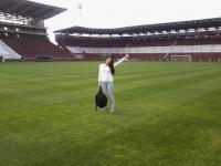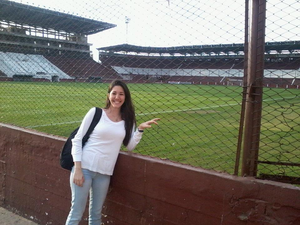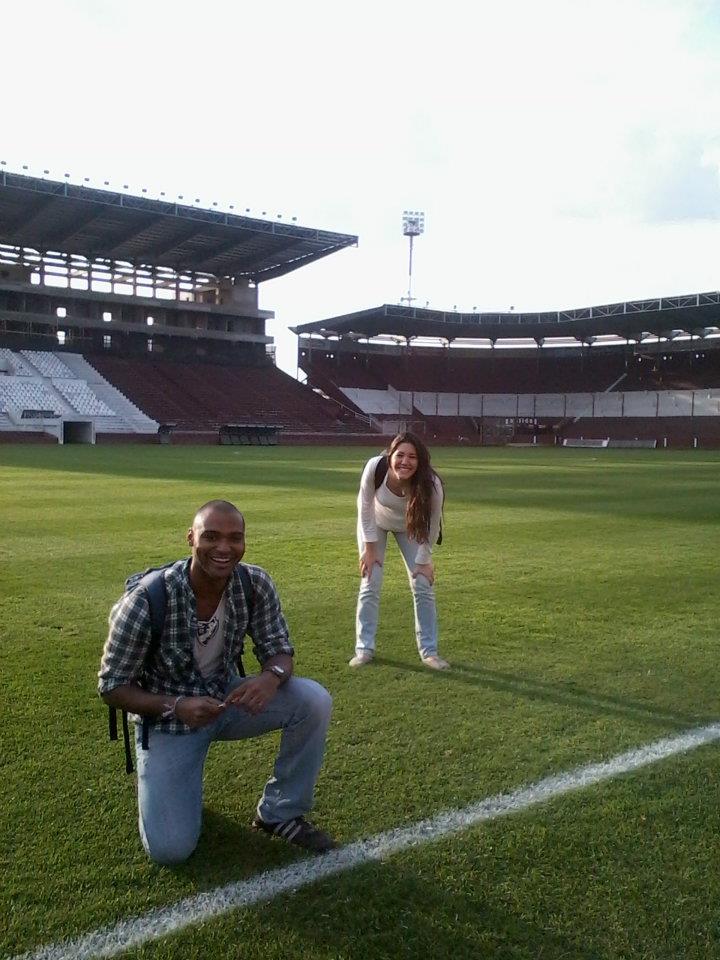 - Chegamos na porta do estádio e o porteiro tava virado para o outro lado. Passamos pela beiradinha que fica aberta para passar carros escondidos! Fomos entrando pelos buracos do estádio e chegamos em campos de treinamento. Mais por dentro vimos os vestiários e a sala de imprensa. Continuamos andando lá por dentro, cumprimentando a galera que estava lá dentro com seriedade, querendo se passar por jornalistas. Após um certo tempo andando lá por dentro, encontramos o estádio. Íamos ficar só na arquibancada, mas tinha um portãozinho aberto para o campo e resolvemos entrar. Ficamos nos divertindo lá dentro, inclusive banco de reservas e no túnel por onde entram os jogadores. Saímos pelo túnel mesmo e passamos em frente os vestiários. Saímos pelo mesmo lugar que entramos. Foi engraçado – contou, sem esconder a alegria, a estudante de Medicina.