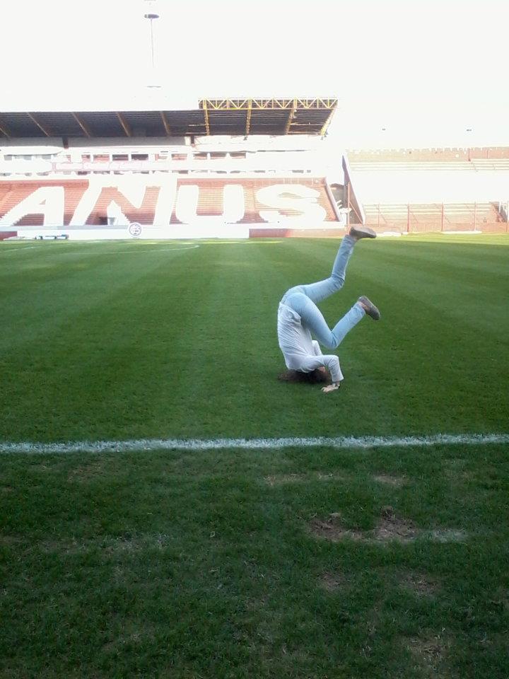 Nesta terça-feira (08/05), Lara repetiu o que costuma fazer e deu uma cambalhota no palco do jogo Lanús e Vasco. Feliz, a jovem explica o ritual e diz que espera que sua invencibilidade seja mantida: