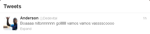 No Twitter, Dedé comemorou gol de Nílton contra o Lanús