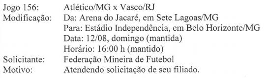 Atlético-MG x Vasco, no dia 12/08, pelo Brasileirão, muda de local
