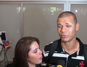 Uma torcedora especial aguardava com ansiedade a chegada da delegação do Vasco, que retornou ao Rio de Janeiro na tarde desta quinta-feira após a dramática classificação para as quartas de final da Libertadores, diante do Lanús, nos pênaltis. Karin, esposa de Nilton, aguardava o volante para retribuir o carinho. O jogador dedicou a ela e à filha Giovanna, de apenas um ano, o gol que marcou na Argentina.