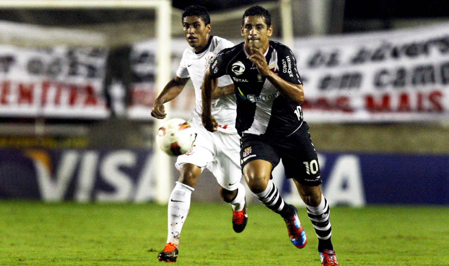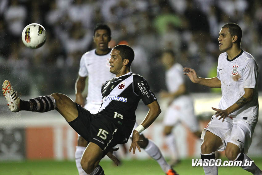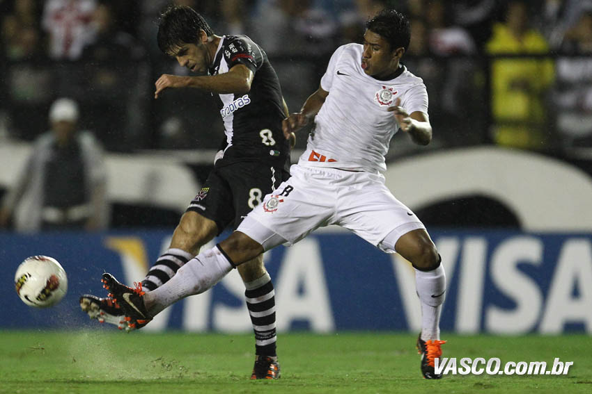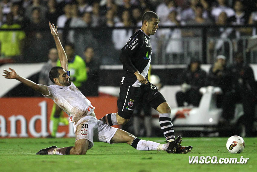 Sem uma referência na frente, o Corinthians apostava na velocidade de Jorge Henrique e nas jogadas individuais de Emerson, mas os dois pouco ameaçavam. Bastante avançado, Alex também tinha dificuldade para passar pela marcação do Vasco. No time cruz-maltino, que tinha mais a iniciativa do jogo, Eder Luis e Fagner, pela direita, eram os que davam mais trabalho para os marcadores.