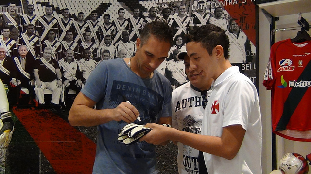 O goleiro Fernando Prass atraiu cerca de 200 pessoas, em sua tarde de autógrafos desta sexta-feira (18/05), na megaloja Gigante da Colina, em São Januário. Bem-humorados, os torcedores formaram uma longa fila para conseguir chegar perto do ídolo, que atrasou seu almoço para atender aos vascaínos.