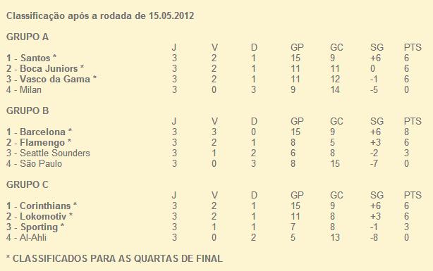 Grupo A - Vasco da Gama-RJ, Santos-SP, Milan-ITA e Boca Juniors-ARG