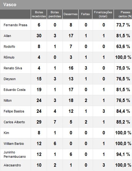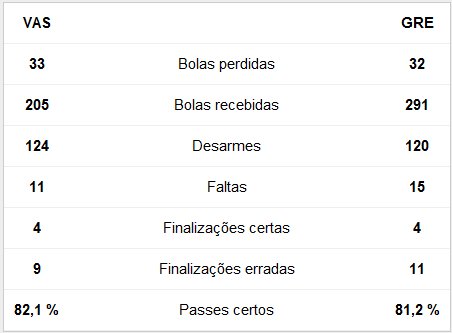 Confira os números do primeiro tempo de Vasco x Grêmio
