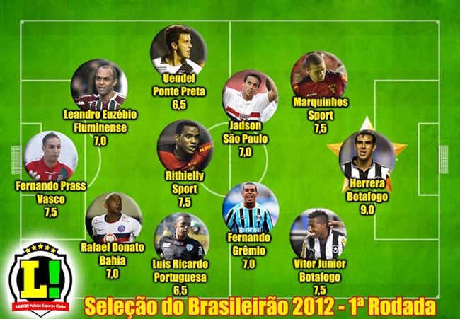 Confira a seleção da rodada: Fernando Prass (Vasco), Luis Ricardo (Portuguesa), Rafael Donato (Bahia), Leandro Euzébio (Fluminense) e Uendel (Ponte Preta); Rithelly (Sport), Fernando (Grêmio), Jadson (São Paulo) e Vitor Júnior (Botafogo); Marquinhos (Sport) e Herrera (Botafogo). Técnico: Oswaldo de Oliveira (Botafogo).