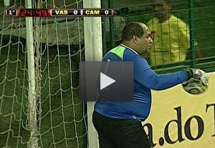 Feijão fez quatro gols para o Atlético-MG e teve a chance de ser o "cara" do jogo. Zada balançou a rede cinco vezes e também teve a oportunidade de ser o destaque da noite. Mas não adiantou, quem roubou a cena no empate em 10 a 10 entre mineiros e cariocas pelo Brasileiro de showbol foi o goleiro Fabrício. Com a camisa 1 colada ao corpo, o gordinho fechou o gol do Galo no primeiro tempo da partida, mas cansou e acabou levando um belo frango na etapa final.