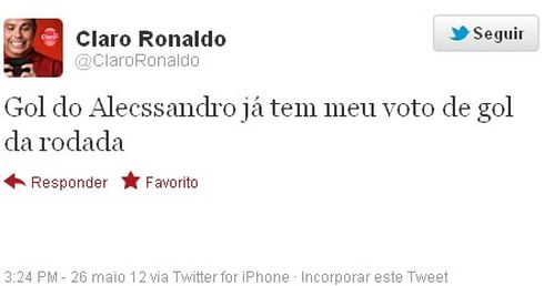 - Gol do Alecsandro já tem meu voto de gol da rodada - postou o Fenômeno.