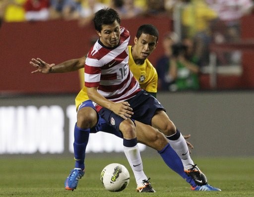 No lance seguinte, Neymar fez falta em Cherundolo e Marcelo chutou a bola no adversário. Mais uma confusão na partida, que não teve nada de amistosa. O Brasil continuou apertando os rivais. Marcelo lançou para Neymar, que cruzou para a área. Pato, que havia acabado de entrar na vaga de Damião, chutou desequilibrado e acertou a trave.