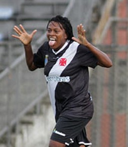 ![]() Tânia Maranhão em uma das suas passagens pela Seleção Brasileira | ![]() Maycon comemora um gol com a camisa vascaína |