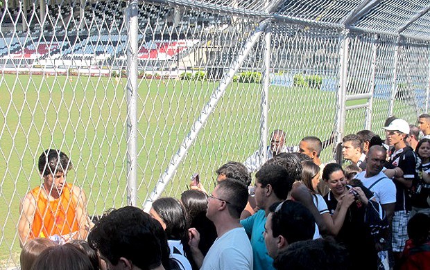 Logo após o treino deste sábado, em São Januário, Juninho Pernambucano fez as honras da casa e passou cerca de meia hora em contato com os torcedores que foram prestigiar a atividade do Vasco. Muito atencioso e sorridente, o meia distribuiu autógrafos e tirou fotos sem perder a paciência até com os fãs mais atirados. O carinho virou até alvo de dúvida na cabeça de uma fã, que, junto a três amigas, levou um cartaz especial para o meia.