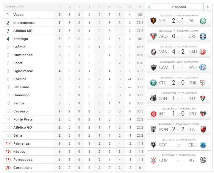 Apenas uma vitória do Botafogo sobre o Cruzeiro nesta 5ª-feira (07/06) tirará do Vasco a liderança do Campeonato Brasileiro após a 3ª rodada.