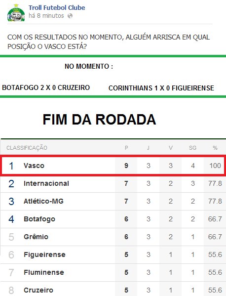 Vascaínos comemoram liderança do Brasileiro pelo Facebook