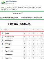 Vasco sobe do 3º para o 2º lugar no Campeonato Brasileiro