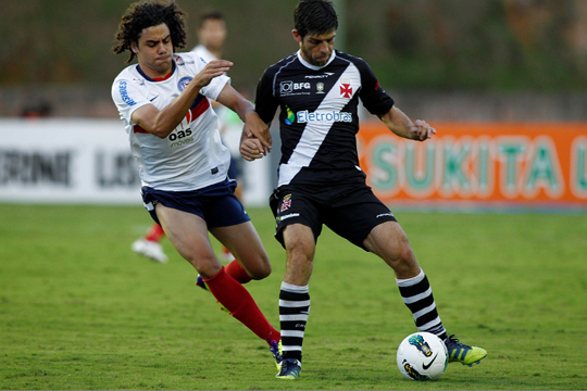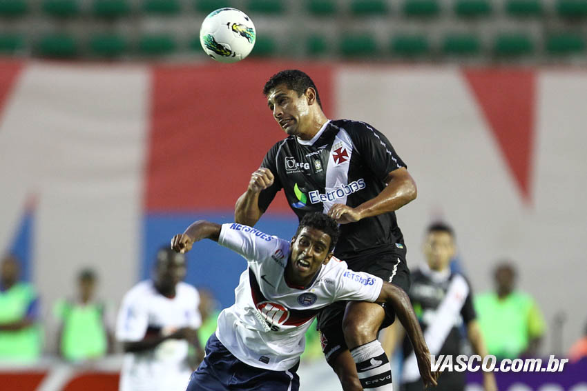 O camisa 10 cruz-maltino estava em dia inspirado. Depois de um passe de peito para Alecsandro, ele recebeu na frente, deu um belo drible em Titi e tocou com categoria por cima do goleiro Marcelo Lomba. Um golaço. O Vasco ainda teve duas ótimas chances de ampliar ainda no primeiro tempo, mas Lomba não deixou. Primeiro, em um chute de fora da área de Juninho. Depois, Allan, substituto de Fagner, que foi vetado antes da partida, fez boa jogada e cruzou para a área. Fellipe Bastos pegou de primeira e o arqueiro do Bahia fez uma defesa espetacular.