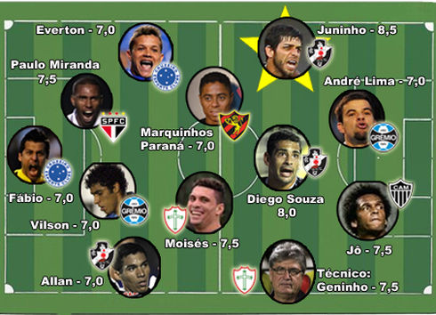 Já São Paulo, Sport e Atlético-MG colocaram um jogador na seleção. O zagueiro tricolor Paulo Miranda fez o gol da vitória no San-São, assim como o atacante atleticano Jô, que fez o gol que bateu o Palmeiras no Pacaembu. Já o volante Marquinhos Paraná, do Sport, não fez gol, mas teve uma atuação segura e de destaque contra o Cruzeiro.