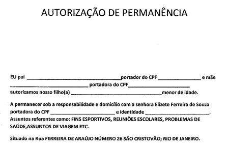 – Precisa fazer essa autorização para que eu possa responder caso alguma coisa aconteça. Você traz isso (autorização) autenticado e os documentos do menino, caso peçam qualquer coisa – afirma Elisete.