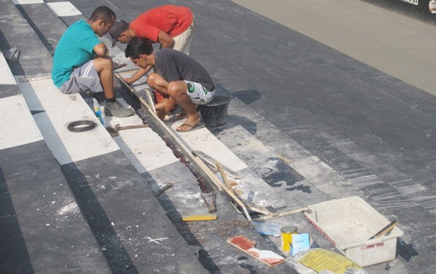 A queda de uma parte do reboco da arquibancada de São Januário serviu de alerta para o Vasco. Na manhã desta sexta-feira, funcionários do clube reformavam outra parte de reboco, em um setor mais central da arquibancada da Colina. Segundo os homens que trabalham no local, os reparos acontecem em função de rachaduras, que aumentam os riscos de uma nova queda.