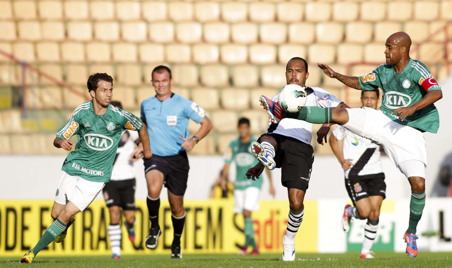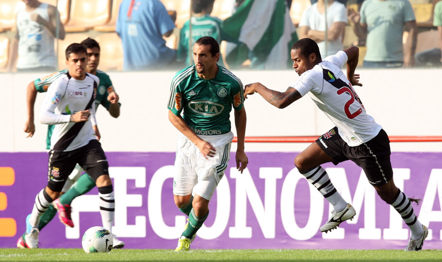 O Palmeiras jogava bem, mantinha o controle do jogo e caminhava para sua primeira vitória no Campeonato Brasileiro. Mas quem tem Juninho, tem esperança até o fim do jogo. Um golaço de falta do Reizinho da Colina garantiu o empate por 1 a 1 e manteve a liderança do Vasco na competição depois do jogo deste domingo, na Arena Barueri. O ponteiro do Brasileirão não jogou tão bem, mas contou com a bola parada para seguir invicto. Já o Palmeiras segue com duas caras: um time incisivo no mata-mata da Copa do Brasil, outro inseguro nos pontos corridos.