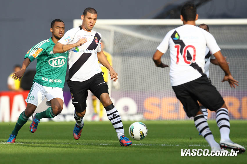 A saída de Luan, com uma lesão na coxa direita, diminuiu o poder de marcação na zona intermediária. Juninho, com toda a sua experiência, percebeu isso e passou a jogar livre. A partir daí o Vasco cresceu, buscou jogadas pelo lado direito, com Fagner, e levou perigo a Bruno. Os chutes de longe foram a principal arma: Romulo, aos 32 minutos, acertou o melhor deles, espalmado com precisão pelo goleiro do Palmeiras.