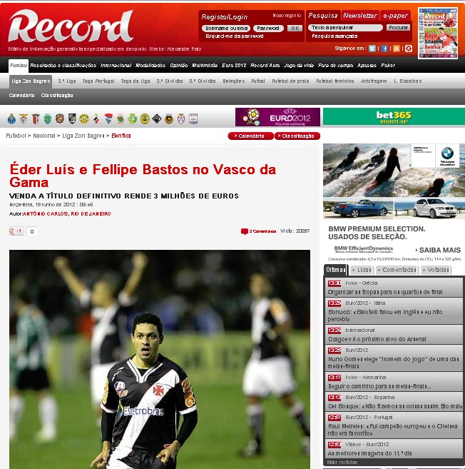Éder Luís e Fellipe Bastos vão permanecer no Vasco da Gama, a título definitivo, depois de o clube do Rio de Janeiro ter chegado a acordo com a SAD encarnada. A venda dos passes do avançado e do médio brasileiros rende ao Benfica um encaixe de três milhões de euros.