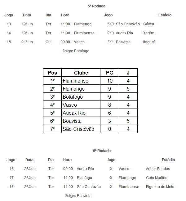 Fonte: Site da FFERJ (tabela), NETVASCO (classificação)