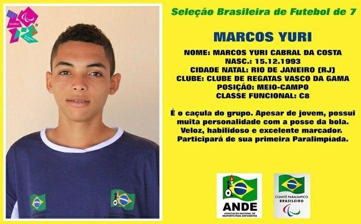Entre os convocados, está o vascaíno Marcos Yuri Cabral da Costa, que é atleta do Futebol de 7 (modalidade disputada por portadores de paralisia cerebral).