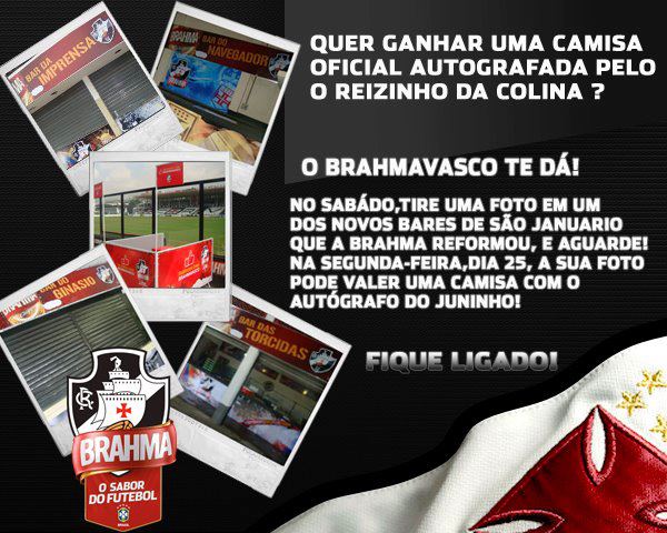 BrahmaVasco: CAMISA DO REIZINHO! Quer ganhar uma camisa autografada pelo Juninho? Vá ao Caldeirão hoje e tire uma foto ao lado de um dos novos bares que a Brahma reformou!! SUA FOTO PODE VALER A CAMISA DO REI!