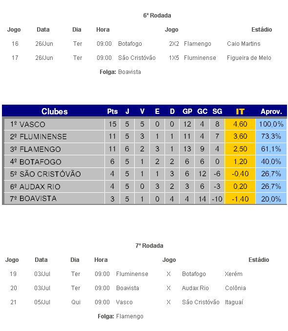 O Vasco já é o campeão do 1º turno do Torneio Guilherme Embry. Com 15 pontos, o Gigante da Colina não pode ser mais alcançado por nenhum adversário na 7ª e última rodada.