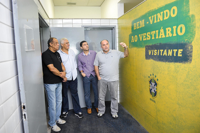 Na manhã do último sábado (30/06), Roberto Dinamite, presidente do Vasco, e os ex-jogadores Jairzinho e Carlos Alberto Torres foram convidados para a inauguração do novo vestiário dos visitantes do Engenhão. Eles foram recebidos no estádio pelo presidente do Botafogo Maurício Assunção.